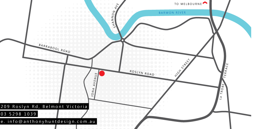 209 Roslyn Rd, Belmont Vic 3216 P. 035298 1039 E. info@anthonyhuntdesign.com.au